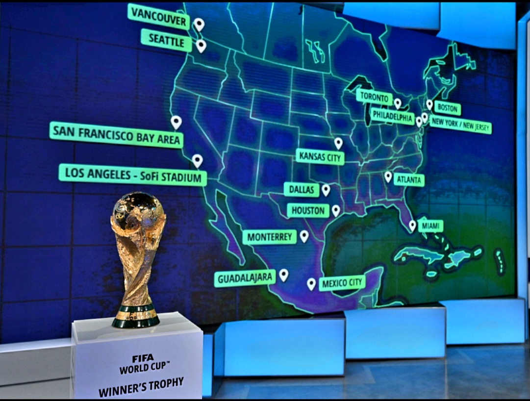 Матчи пройдут в 16 городах, в том числе в Мехико, Гвадалахаре, Монтеррее (Мексика), Торонто, Ванкувере (Канада), Нью-Йорке (пригород Ист-Ратерфорд), Филадельфии, Бостоне, Атланте, Майами, Хьюстоне, Далласе, Лос-Анджелесе, Сан-Франциско, Канзас-Сити, Сиэтле (США)